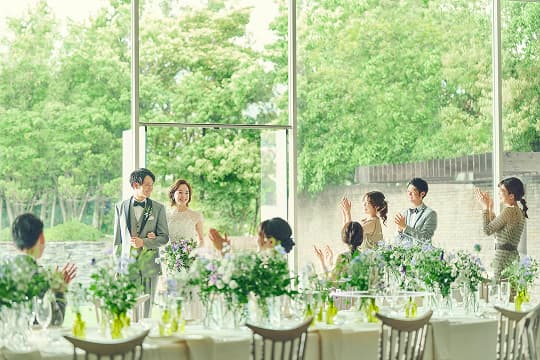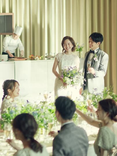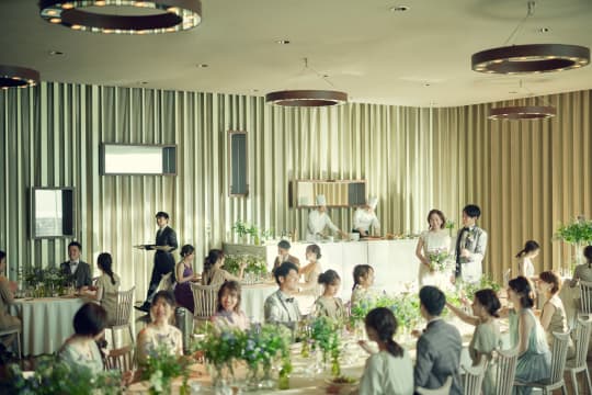 ガラス張りの明るく広々としたバンケットはもちろん、ラウンジ前のフロントガーデンやテラス、水上ステージのあるガーデンなど敷地全てを貸切り、おふたりだけのプライベートなパーティーを形に出来ます。広いスペースを自由に使い、動きのあるパーティーを満喫していただけます。