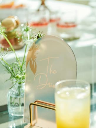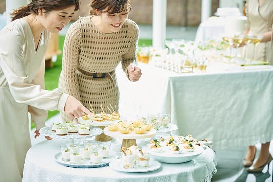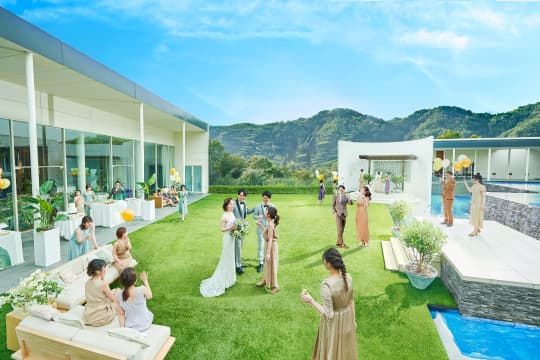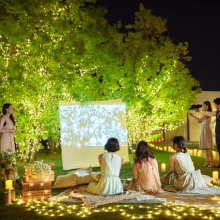 バンケット前のガーデンをはじめ、ラウンジ前のフロントガーデンなど敷地全体を使って演出を行うことが出来ます。デザートビュッフェやバルーンリリースはもちろん、水上ステージを使った入場演出やビアガーデン、DJブースや花火で彩る幻想的なナイトパーティーなど、おふたりのテーマに合わせた自由なウエディングを形にしてください。敷地内には絵になるフォトスポットも多く、素敵な想い出となる記念撮影も可能です。