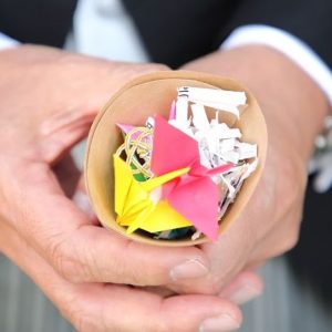フラワーシャワーならぬ、折鶴・水引シャワーや