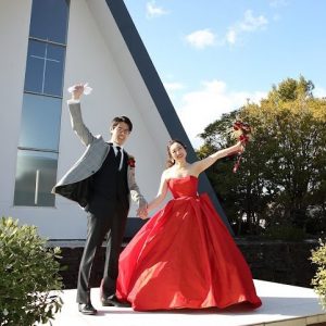 ガーデンに映える真っ赤なドレスも取り揃えております^^