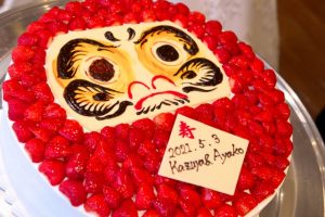 ✓だるまのケーキに目入れ