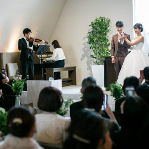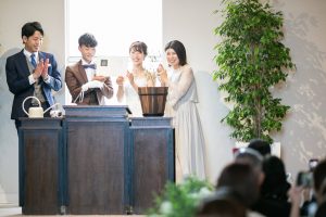また、新郎入場時はキリスト式では牧師と入場しますが、人前式ではオリジナルな進行も可能です。