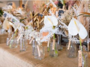 皆様にお持ちいただいたお花はゲストテーブルの花瓶に挿していただき