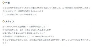 特典内容: ドレス(1着選び放題)+料理1ランクアップ2000円分×人数分 プレゼント