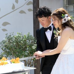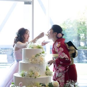 新郎新婦様がお互いにケーキを食べさせ合うシーンですが、