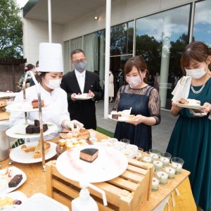 ゲストはスイーツを自由に選べてテーブル以外のゲスト同士でも会話が弾む♪