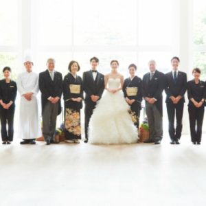 新郎新婦様とスタッフ全員がゲスト皆様にとびきりのSmileを届けるシーンです