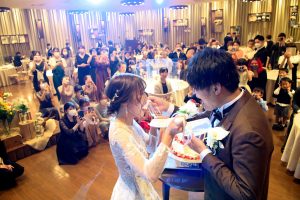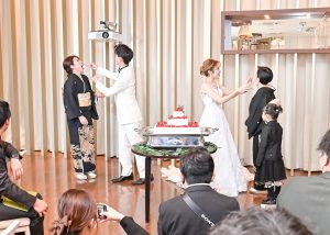 後方の席からもケーキ入刀の瞬間を楽しんでいただけます。