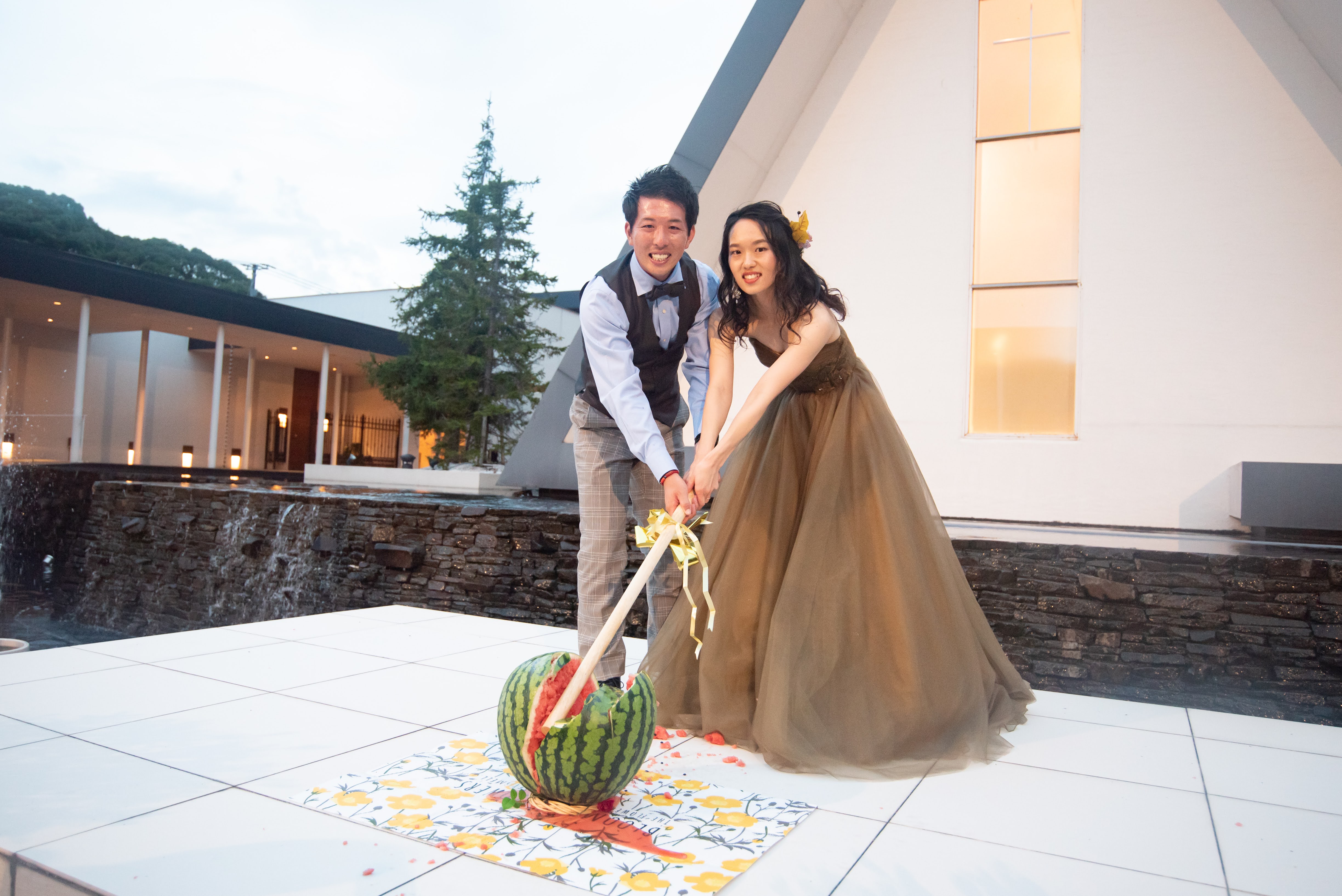 ケーキ入刀の代わりに「すいか入刀」🍉