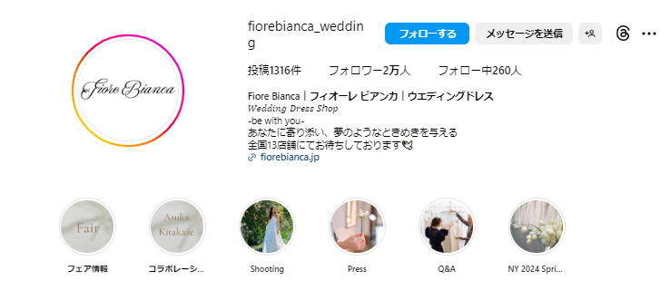 皆様はFiore Bianaのインスタグラムアカウントご存知ですか?