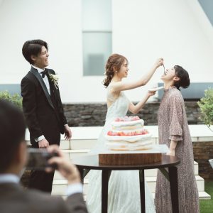 新郎新婦様がお互いにケーキを食べさせ合うシーンですが、