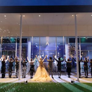 新郎新婦様とスタッフ全員がゲスト皆様にとびきりのSmileを届けるシーンです