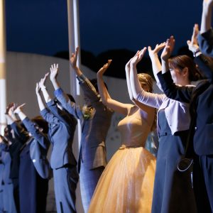 ゲストの皆さまもご披楽喜と思いきや曲が変わりカーテンオープンし、