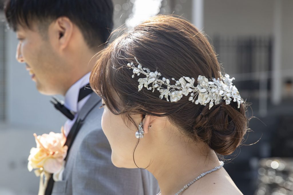 ふんわり柔らかアップヘアに控えめなシルバーをたす