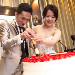 結婚式の代表的なシーンでもあるケーキ入刀のシーン