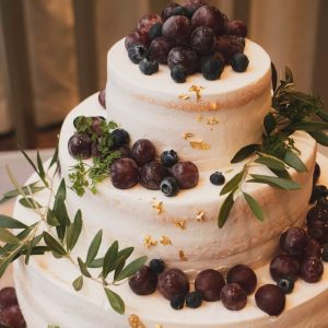 1つ目はシンプルなウエディングケーキにフルーツと金箔を添えて…♡
