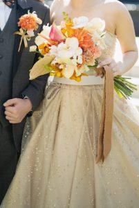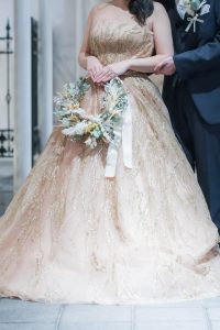 ドレスや会場の雰囲気に合わせてフローリストと一緒に選んだブーケは