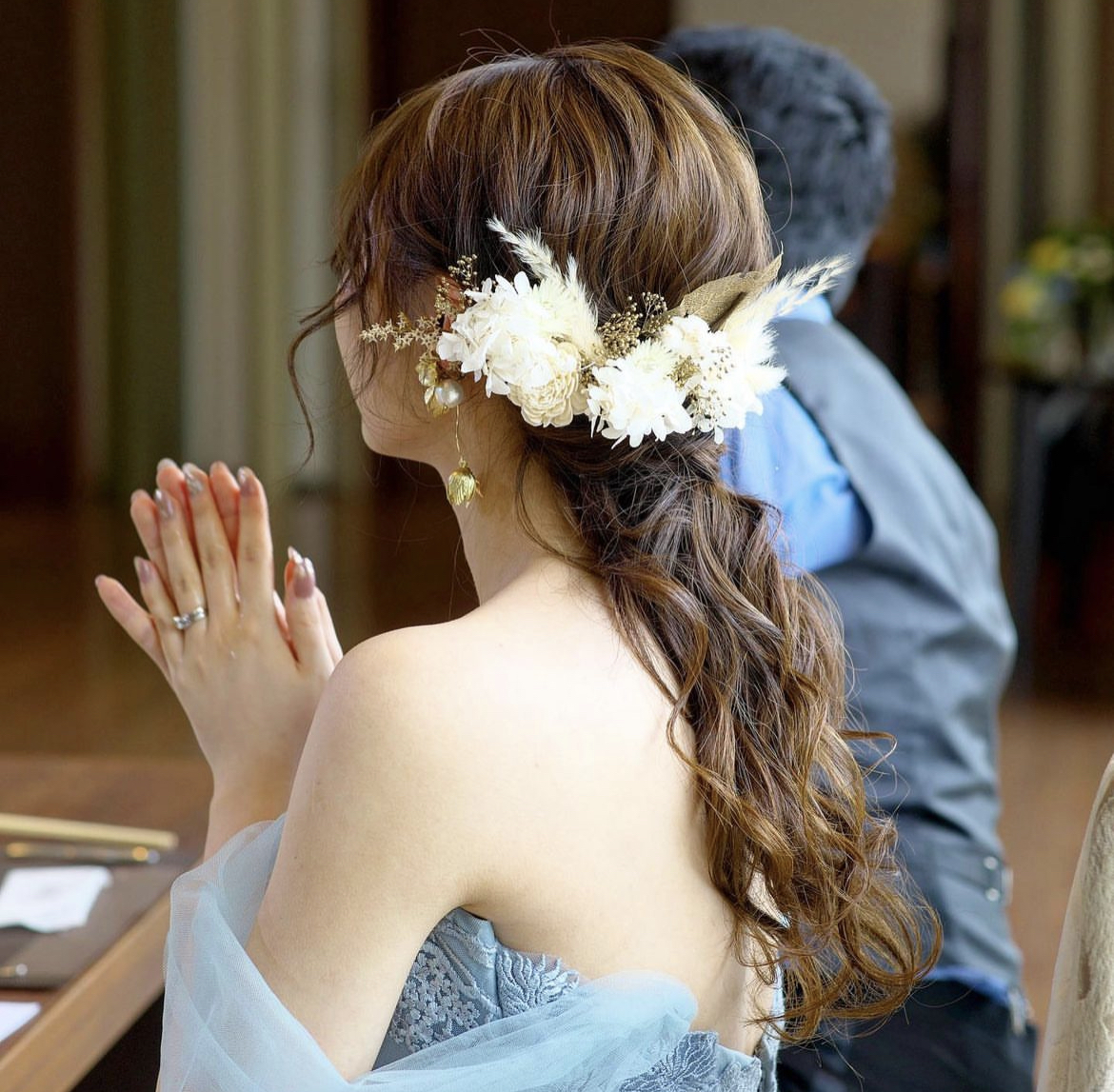 お花ではなく、アクセサリーをさりげなくお召しいただくのもおしゃれです^^
