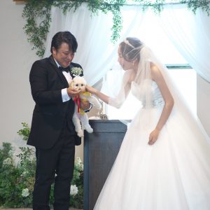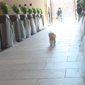 チャペルでのセレモニーではなんと大好きなワンちゃんと