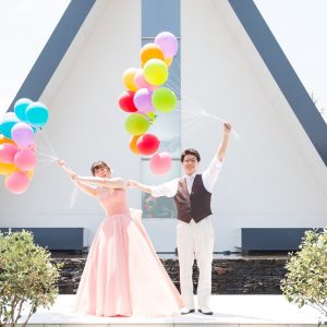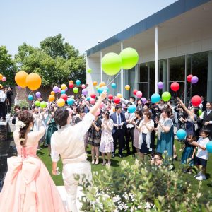 ゲストの皆さまと息を合わせて一斉に大空へバルーンを飛ばす演出です^^
