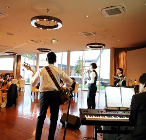 演奏後はご新郎様とバンドメンバーの皆様がとっても楽しそうに笑っている姿と