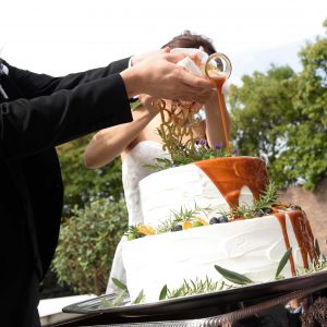 例えばガーデンでのケーキ入刀、ファーストバイト