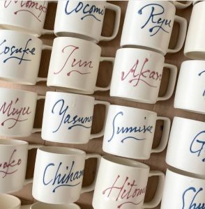ゲストのお名前が入ったマグカップを並べてプレゼントしたり