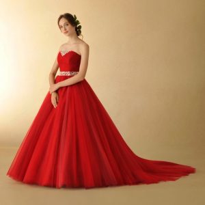 赤といっても様々ですが、大人っぽくシックにしたい方であればシンプルな赤のカラードレスもおすすめです!