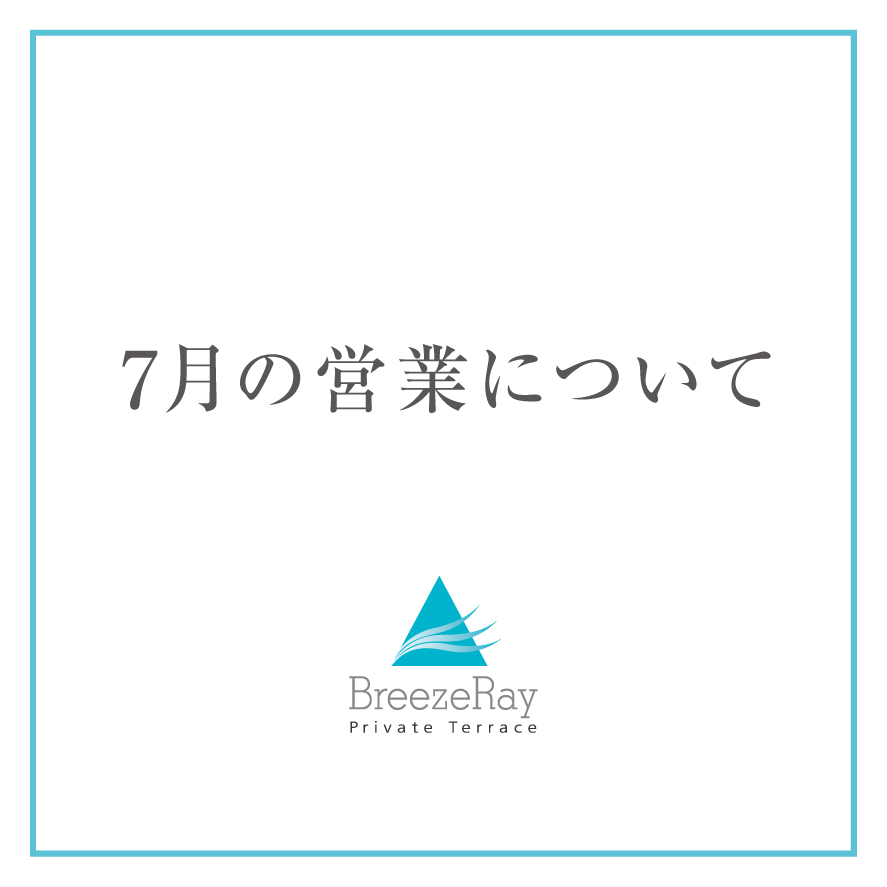 日頃よりブリーズレイ・プライベートテラスをご利用いただき誠にありがとうございます。 7月1日(水)より営業時...
