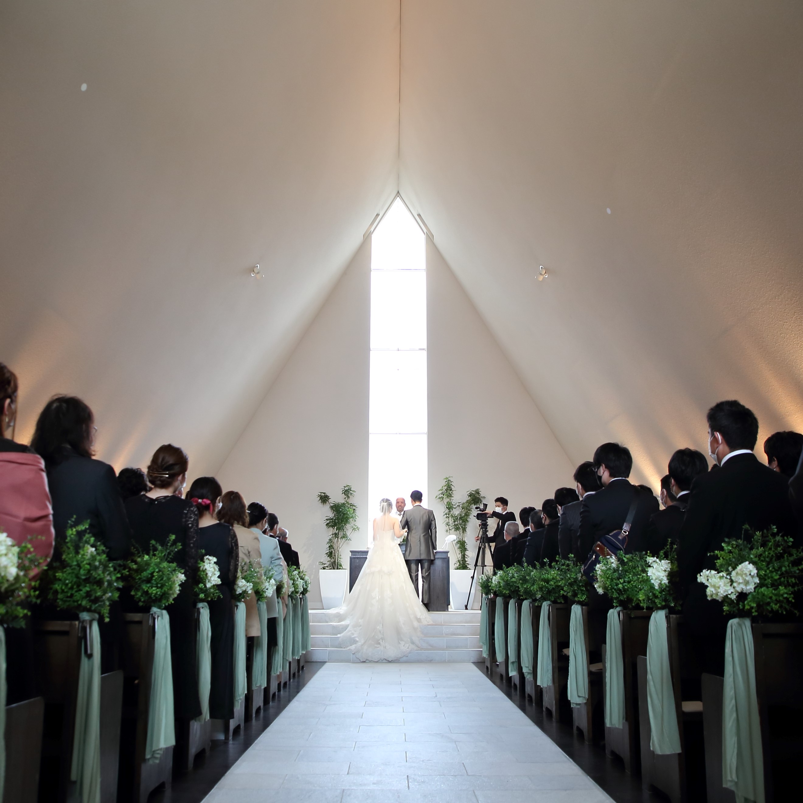 チャペルの特徴的な形も印象的でここで式を挙げたいという気持ちが強まりました。