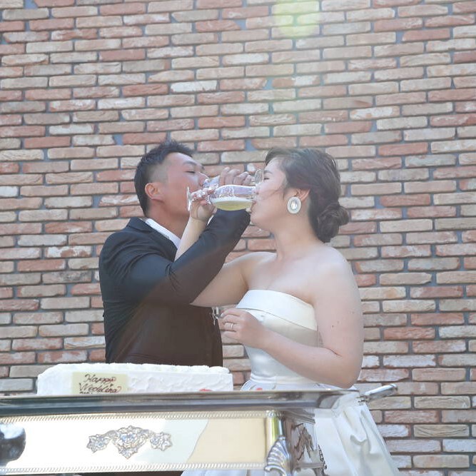 私達夫婦はお酒が好きなので、ケーキ入刀のあとにビールサーブを行い