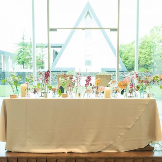 お花が好きなので、披露宴会場の装飾は特に新婦のこだわりがあったのですが、写真やイメージを装花担当プランナーからも沢山提案して下さり、理想の装飾にして頂きました!