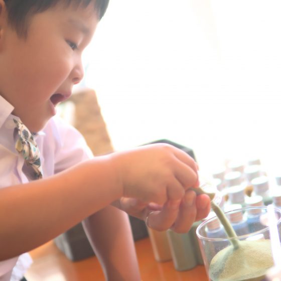・サンドセレモニー:ゲストに待ち時間の間に入れてもらい、披露宴で完成させました。両家で作った、世界に一つだけの作品が出来きました。