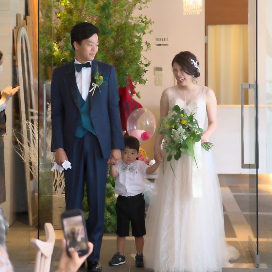 しかし、私たちの中で結婚式を行う理由として『両親に感謝の気持ちを伝える場面を作りたい』というものがありました。学生結婚をし、出産を経てからの国家試験、就職活動など、それぞれの両親にかなり心配をかけてきた私たち。自分たちで計画し、「今までありがとう、心配かけてごめんね。これからもよろしくね。」と伝える場面を作りたかったのです。普段の生活の中でも感謝を伝えることはできますが、やはりウェディングドレスやタキシードを着て行うものは特別感があり、両親にも「式典的に行う事で伝わるものがある」と感じてもらえました。成長した姿を見せることが出来たかなとも思います。