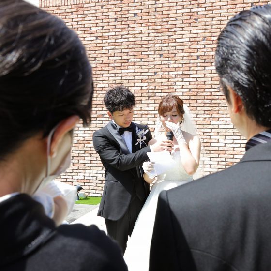 コロナ禍での開催について、家族と何度も話し合い、ギリギリまでたくさん揉めました。当日は親族一同が披露宴には参加できず、挙式のみの参加となったため、プランナーさんのご提案でアフターセレモニーに両親への手紙と記念品プレゼントの演出を取り入れていただき、しっかりと日頃の感謝の気持ちを伝えることができました。