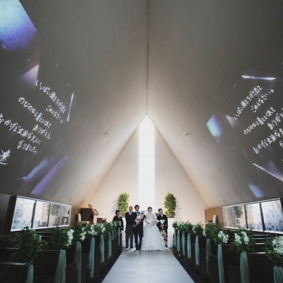 私たちはコロナ禍の為結婚式を1年間延期しました。1年待ちましたがコロナウィルスが収まらず、悩んだ末に職場の方々を招待しないという決断をしました。ゲストが親族と友人だけになってしまいましたが、その分新郎新婦とゲストの距離がとても近いアットホームな結婚式にしようと、プランナーさんと打ち合わせを繰り返してきました。ゲストの皆様の記憶に残るような結婚式にしたいと思い、みんなが経験した事のない演出を詰め込みました。担当のプランナーさんでさえも初経験の演出を一緒に考えました。無茶を言って申し訳ございませんでした(笑)。プランナーさんはじめスタッフの皆様が柔軟に対応してくれたおかげで、思い描いていた通りの結婚式を挙げる事ができました。式が終わった後、友人達から「あの演出が面白かったよ」「めっちゃ楽しい結婚式だった」「また明日も結婚式してほしい」と嬉しい声をもらうことができました。当日まで私たちをサポートしてくれたプランナーさんはじめスタッフのみなさんのおかげです。本当にありがとうございました。