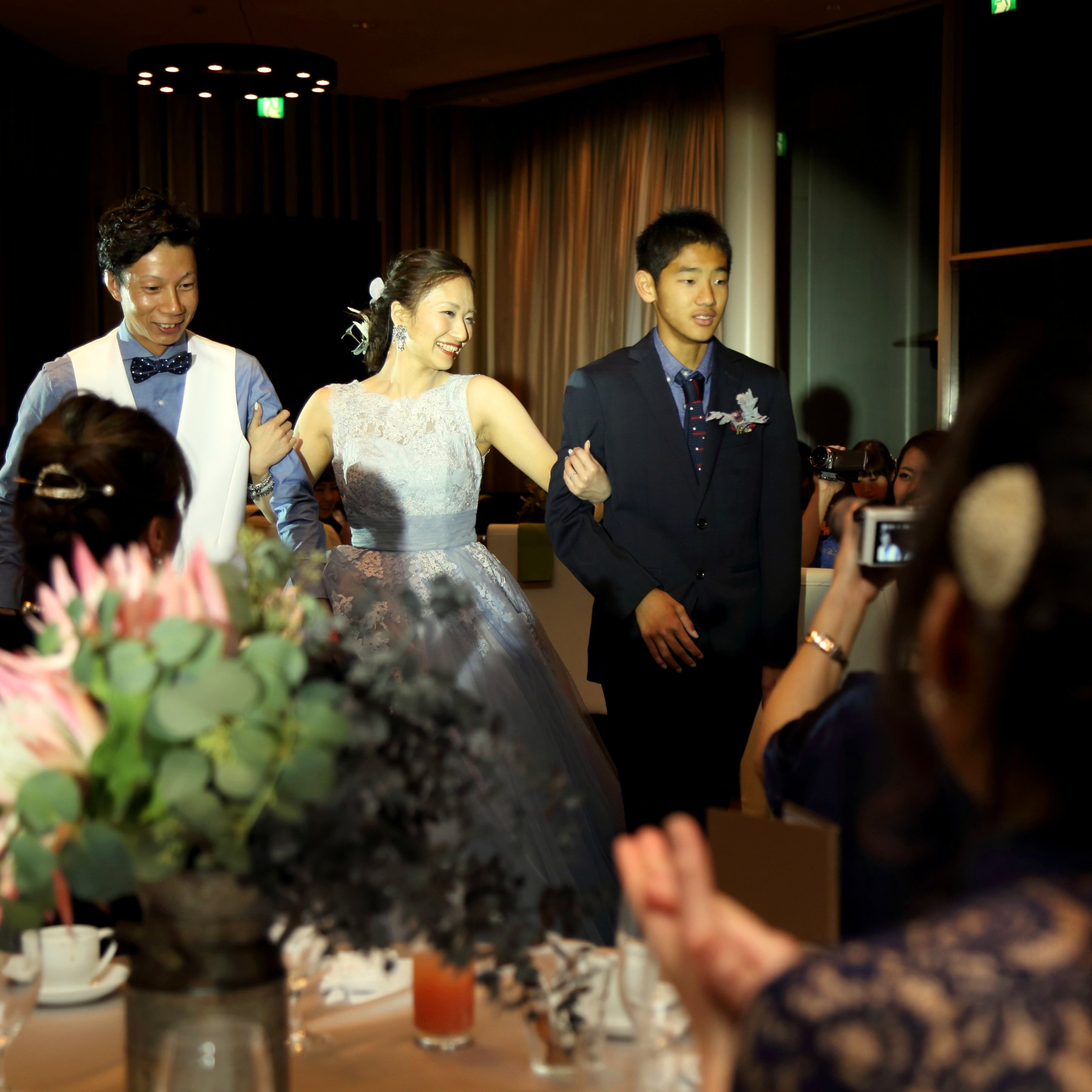息子との退場もサプライズで計画していた私達。思春期なので一緒に退場してくれるか心配していましたがすんなり来てくれて。口数の少ない息子だけど、楽しんでくれてる事や私達をしっかり見ていてくれた事が伝わり胸がいっぱいになりました。オールキャストフィナーレは友人からも好評でした!今でもみんなでその日を思い出して幸せな気持ちになります。