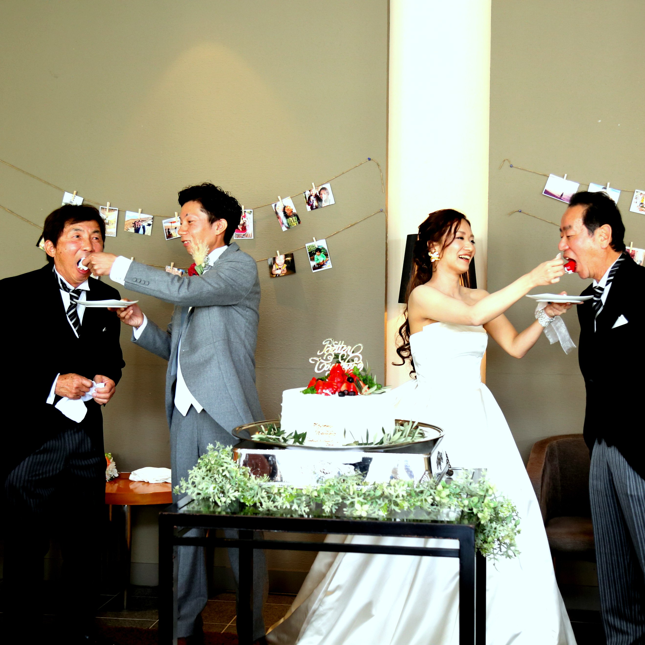 1部の家族婚では、遠方からのゲストも多く会う機会が少ないのでゆっくり話がしたいと考えていました。高砂席は作らずにそれぞれのゲストテーブルに2人の席を作ってもらい、一緒に食事をしながら話をしてまわっていくという形をとりました。ゲストからもこうゆうのいいね!って言ってもらえて嬉しかったです。ケーキカットの後は家族にも楽しんでもらうため、サプライズバイトで息子・両親にも参加してもらいました。手紙は両親だけでなくみんなに感謝の気持ちを伝えたかったので、お互いの両親をはじめ、息子・妹・祖母、、と1人1人に想いを伝えました。少人数だったからこそゲストのすぐ側で手紙を読むことが出来ましたし、アットホームな家族婚だからこそ出来た事かなと思います。