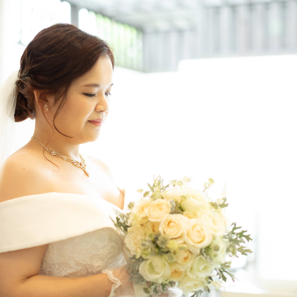 インターネットでいくつか式場を調べて、立地の良さに引かれてこちらのブライダルフェアに参加させて頂きました。その際に、スタッフさんたちの細やかな対応、気配りや式場の雰囲気がとても好印象で、こちらで2人の式を挙げたいと強く思い、選ばさせて頂きました。