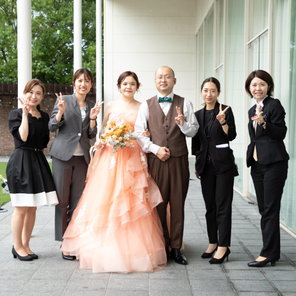 当日直前まで感染症が拡大している状況の中で、本当に今、式を挙げて良いのかと何度も悩み、不安な気持ちにもなりました。ですが、その都度スタッフの方と何度も打ち合わせをし、気になることを伝えて確認してもらったりと、できる限りの感染対策をして頂き、安心して当日を迎えることができました。