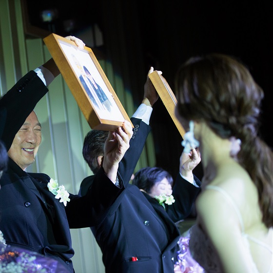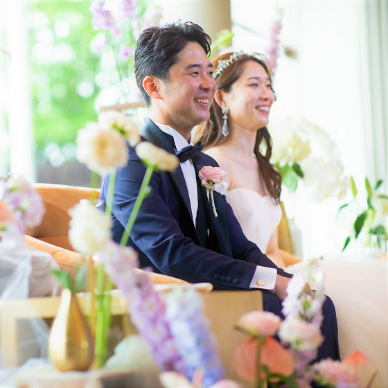 ゲストへ感謝の気持ちを伝えたく、みんなで楽しめる式にしたいと思っていました。そのため、美味しい料理で心を満たしてもらいたく、一から料理長とメニューを決めました。また、参加型のゲームをおこなったり、結婚式を思い返すと二人だけの思い出ではなく、参列してくださったゲストの笑顔が浮かぶ式となりました。