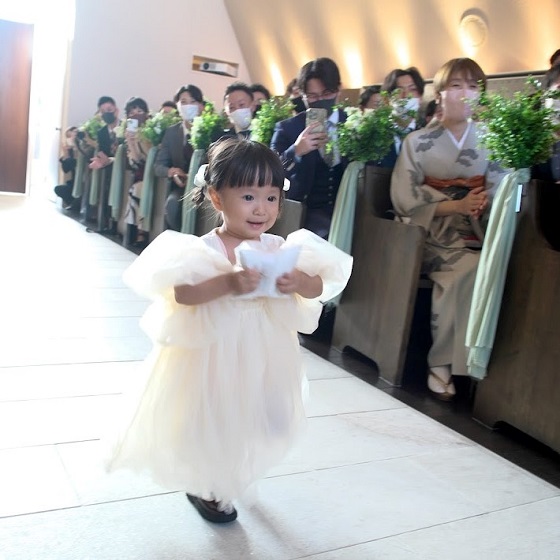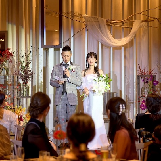 また、ブーケや披露宴会場の装花はとてもこだわり、フローリストの方との打ち合わせはプランナーさんにも立ち会ってもらい、とても時間をかけて行いました。そのおかげでゲストの人にもすごく褒めてもらいましたし、お持ち帰りのお花もとても喜んでもらいました。