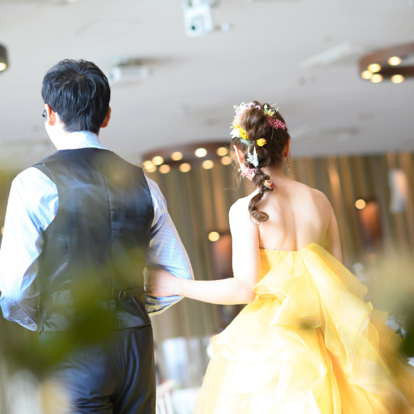 三つ目は衣装です。何度もドレスショップに足を運び、納得いくまで試着をさせて頂いてドレスを選びました。なかなか決められない中でも衣装スタッフさんが親身になり一緒にドレスを選んで下さったおかげでお気に入りのドレスに出会うことができました。タキシードもお色直しでは雰囲気が変わるようにシャツや小物などをコーディネートし、新郎新婦の衣装の雰囲気を合わせました。
