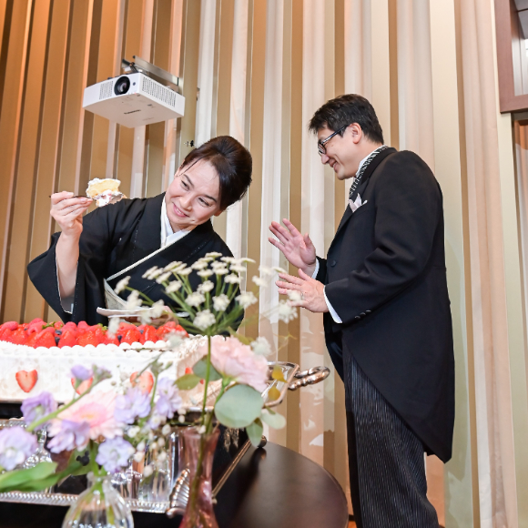 当日はチャペルの扉が開く瞬間までは緊張していましたが、扉が開いていざ始まるととても楽しくてあっという間でした。披露宴では両親へのサプライズバイトを計画していましたが無事に成功し、両親の楽しそうな姿も見れて大満足でした。