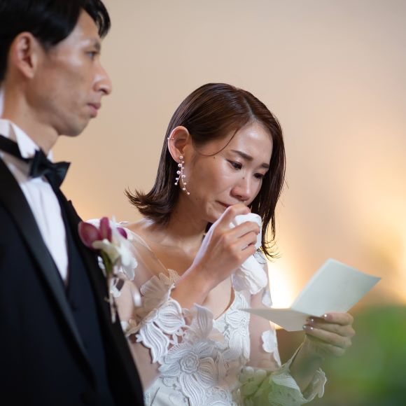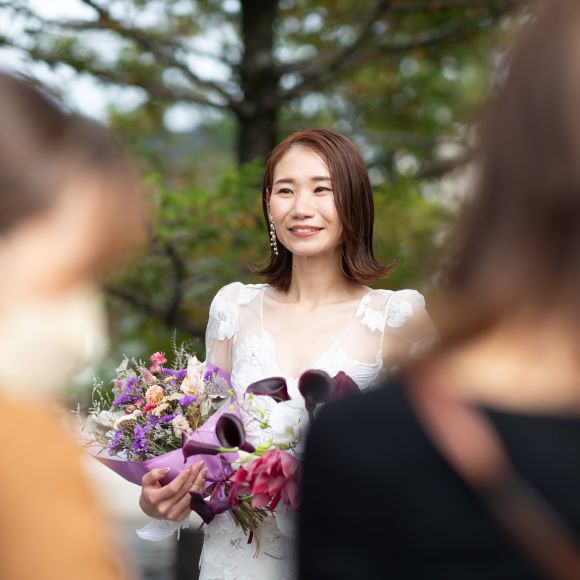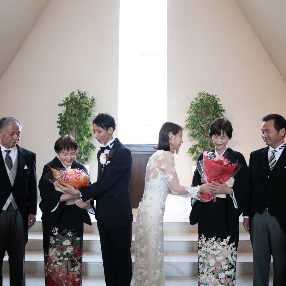 お見送りの時にサプライズ登場で友人たちが会いに来てくれました。駆け寄ってくる友人たちの姿を見て、大号泣でした。水面下で友人と担当プロデューサーの井村さんが話を進めてくださっていたようで家族婚を選んだ新郎新婦の想い、友人たちの気持ちも汲み取っていただきとても感謝しています。