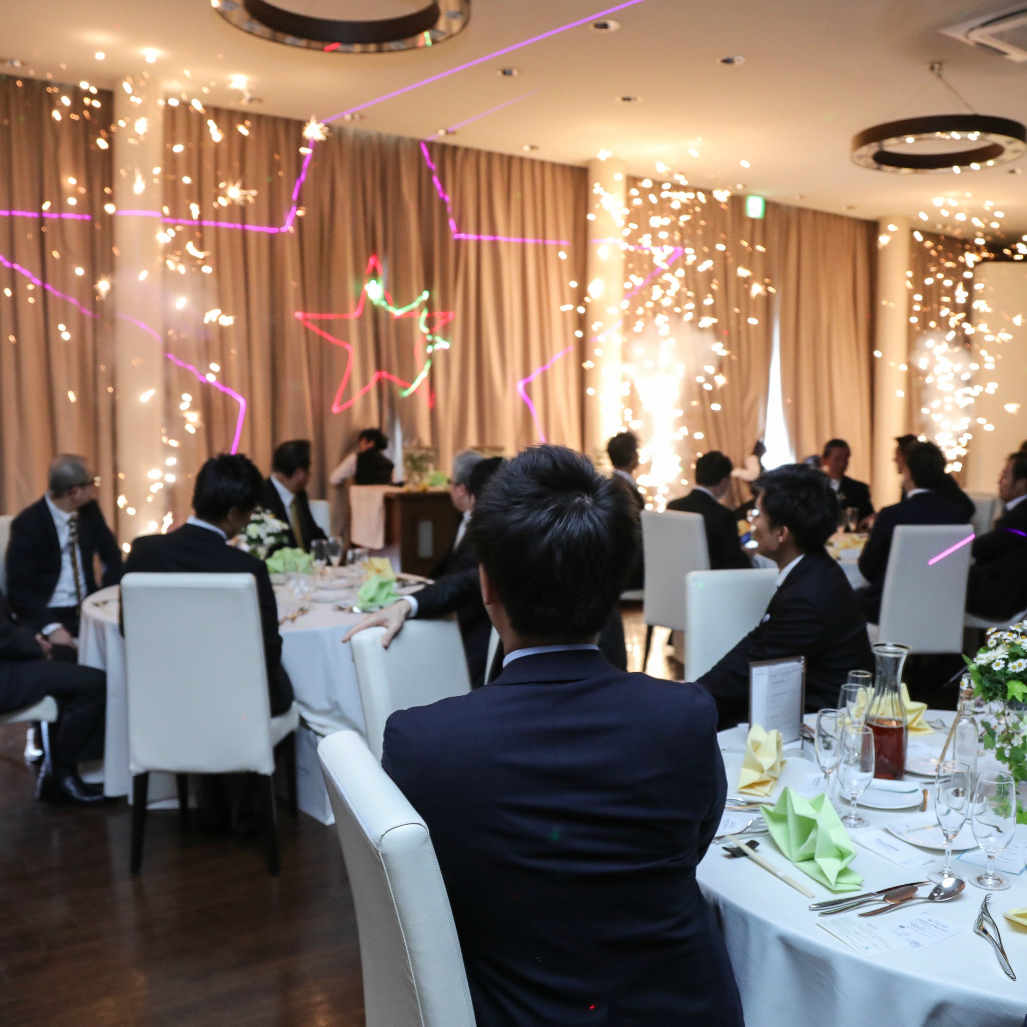 大好きなWANIMAの曲にレーザー演出をLIVEのように合わせて、正面のカーテンが開くと同時に室内花火を上げてもらい入場するというものでした。