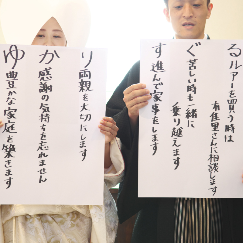 当日は朝6時20分入りで早かったですが、スタッフの方々が快く出迎えてくださり、素敵な1日が始まりました。準備しているところから撮影もしてくださり、とても嬉しかったです。挙式が始まってからは、あっという間に結びまで時間が過ぎていきました。ですが、常にプランナーさんが傍に付き添ってくださり、これまで一緒に考え、準備してきた進行通りに事が進んでいきました。まさに思い描いていた結婚式そのものが実現し、感無量な1日でした。また、何度涙を流しても、美容スタッフの方がすぐ来てくださりとても心強かったです。