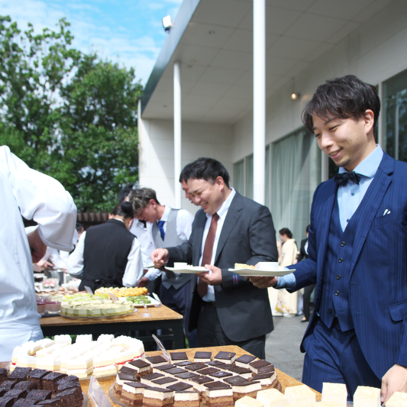 デザートの時間には、みどりの映えるガーデンでデザートビュッフェを行いました。