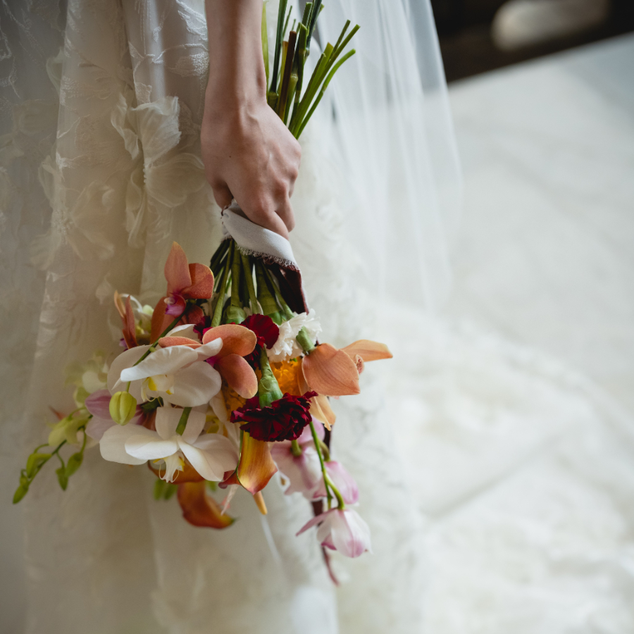 会場やお花の雰囲気はざっくりしかイメージが湧いていなかったのですが、打ち合わせで色んな写真を見せていただき、色のニュアンスなどをお伝えすることが出来ました。