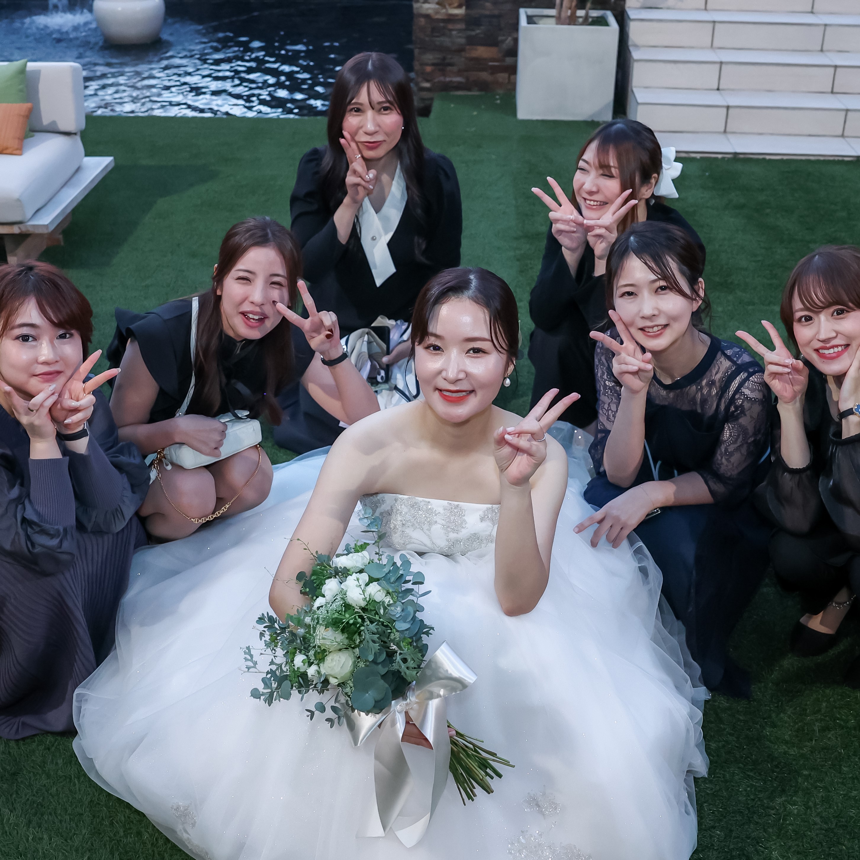 当日は友人、親戚の方々、プロデューサーさんヘアメイクさん他スタッフの方々、大好きな人達と人生で一番の思い出を作るとこができ、本当に幸せに思います。